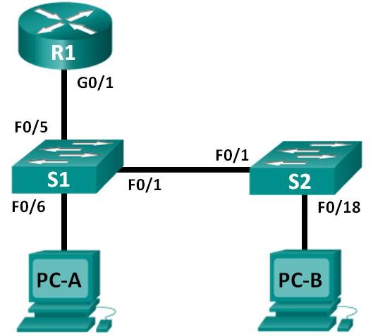 cable directo de Ethernet entre los switches S1 y S2. Si utiliza otro modelo de